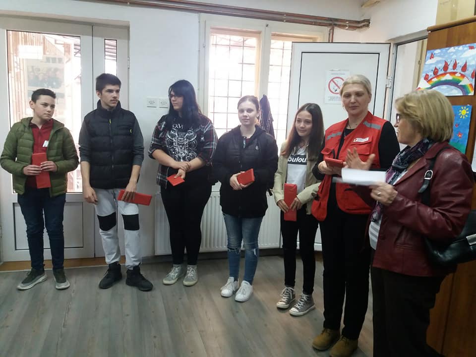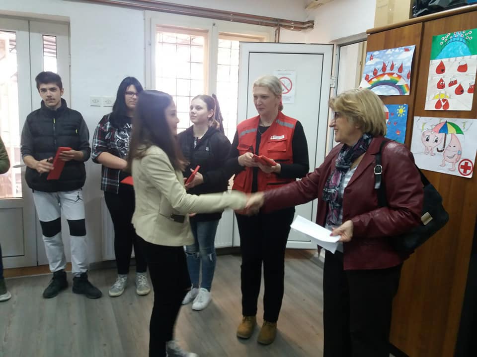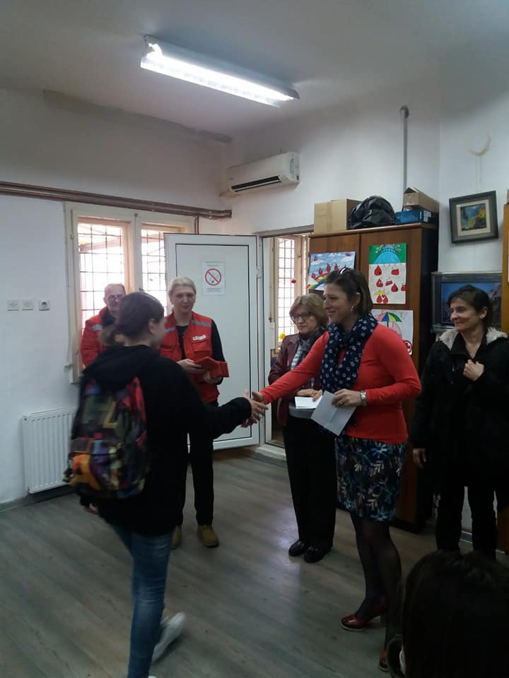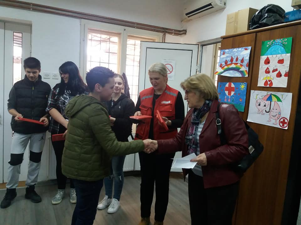 Prvoplasirani učenici predstavljace organizaciju Crvenog krsta Šid na Pokrajinskoj smotri znanja u Novom Sadu,10 aprila 2019.godine u organizaciji Crvenog krsta Vojvodine.